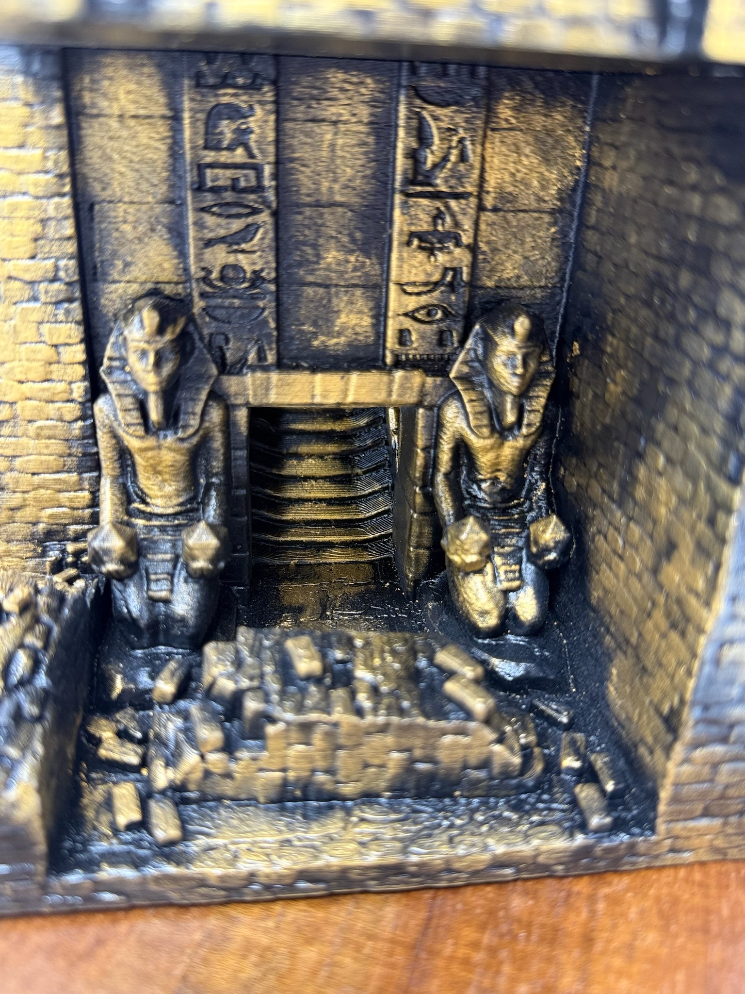 The detailed design features stonework textures, worn steps, and a noble sphinx guardian eternally protecting what lies beneath. As your dice tumble through hidden channels within the crypt, they echo with the secrets of lost civilizations. Whether you’re exploring sun-scorched deserts in a campaign or unearthing relics from a forgotten age, this dice tower reinforces the mystery and majesty of your journey.